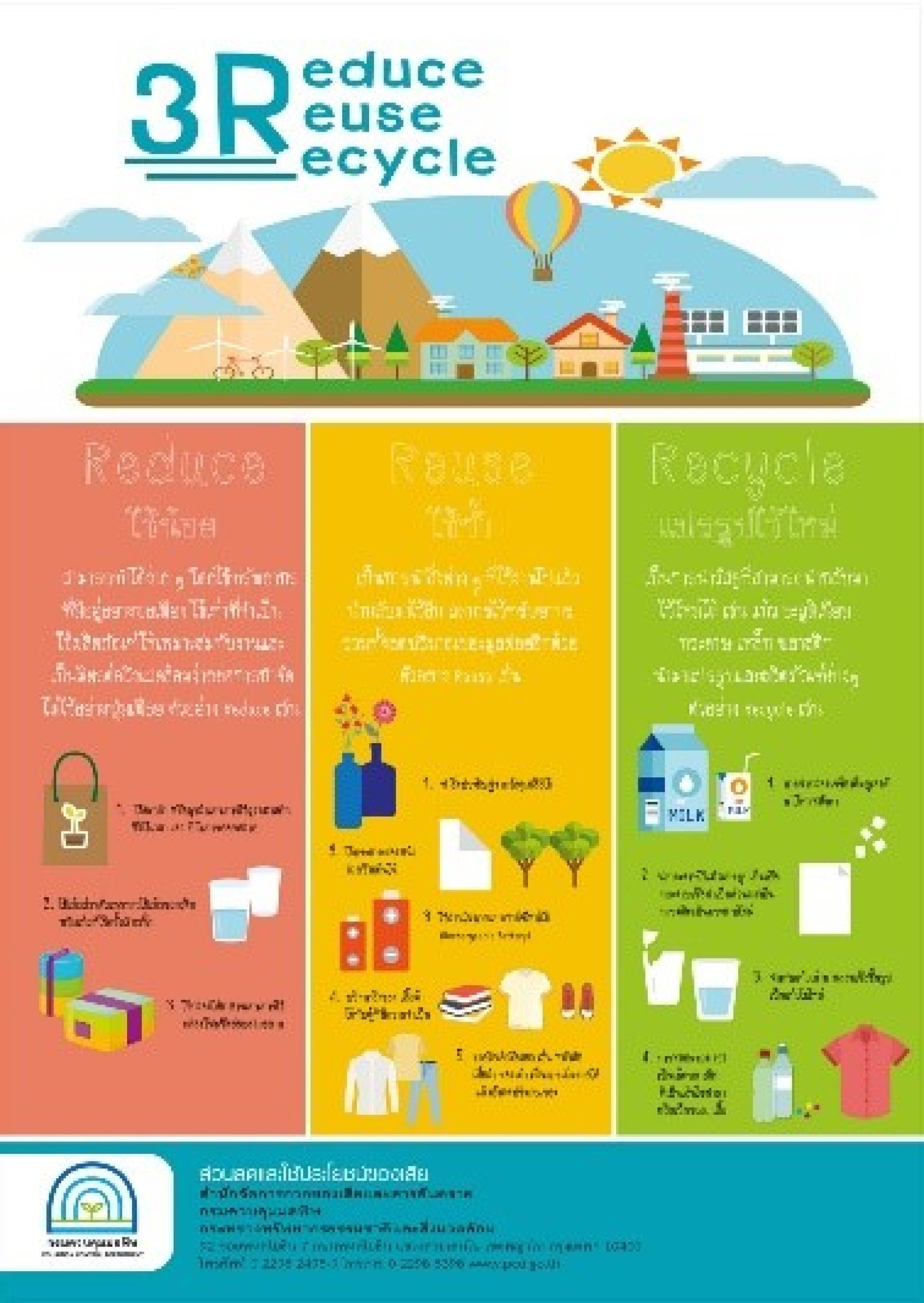 · การลด (Reduce) คือ การลดปริมาณขยะ โดยการลดการใช้สิ่งของหรือวัสดุที่ไม่จำเป็น